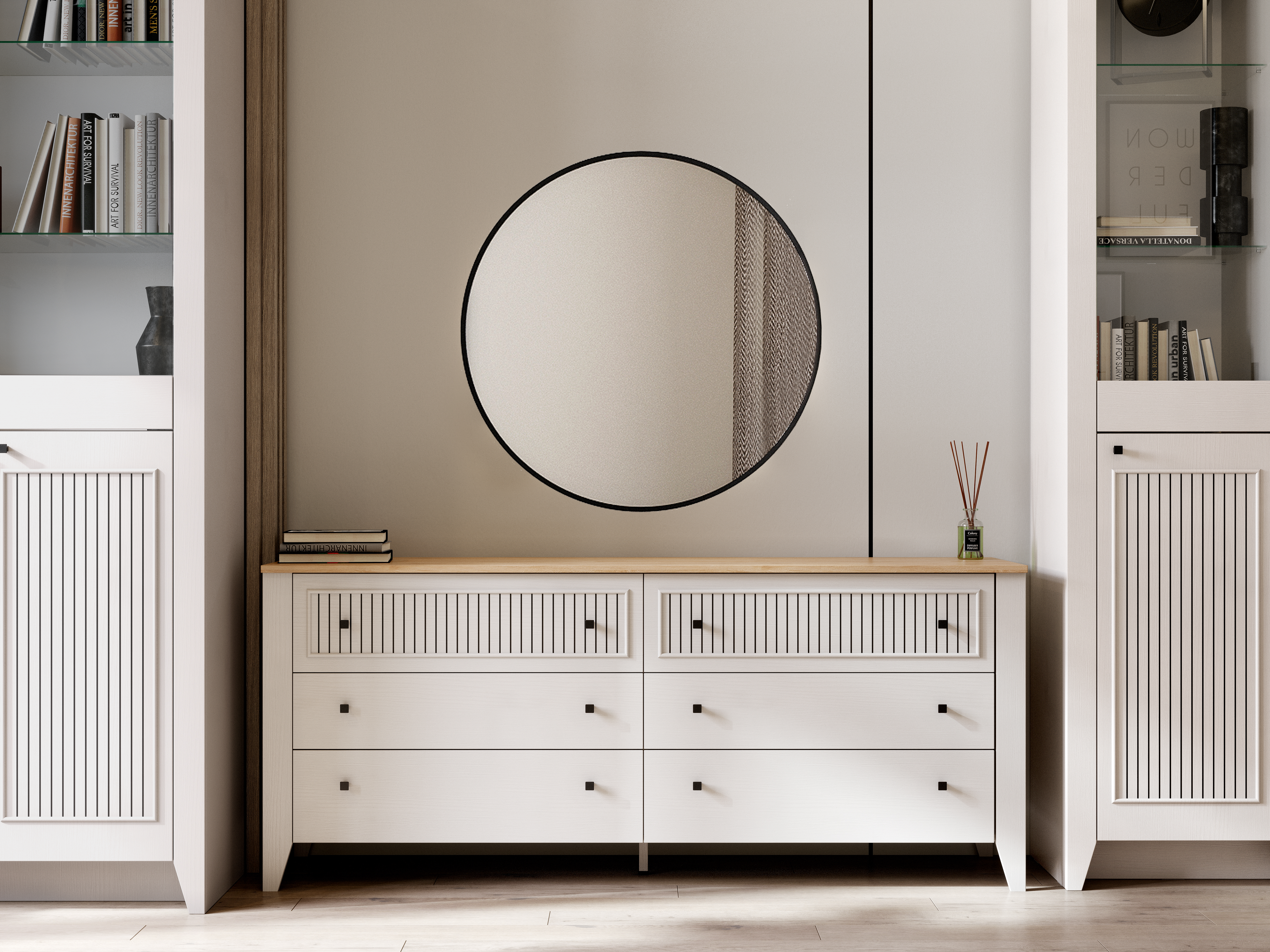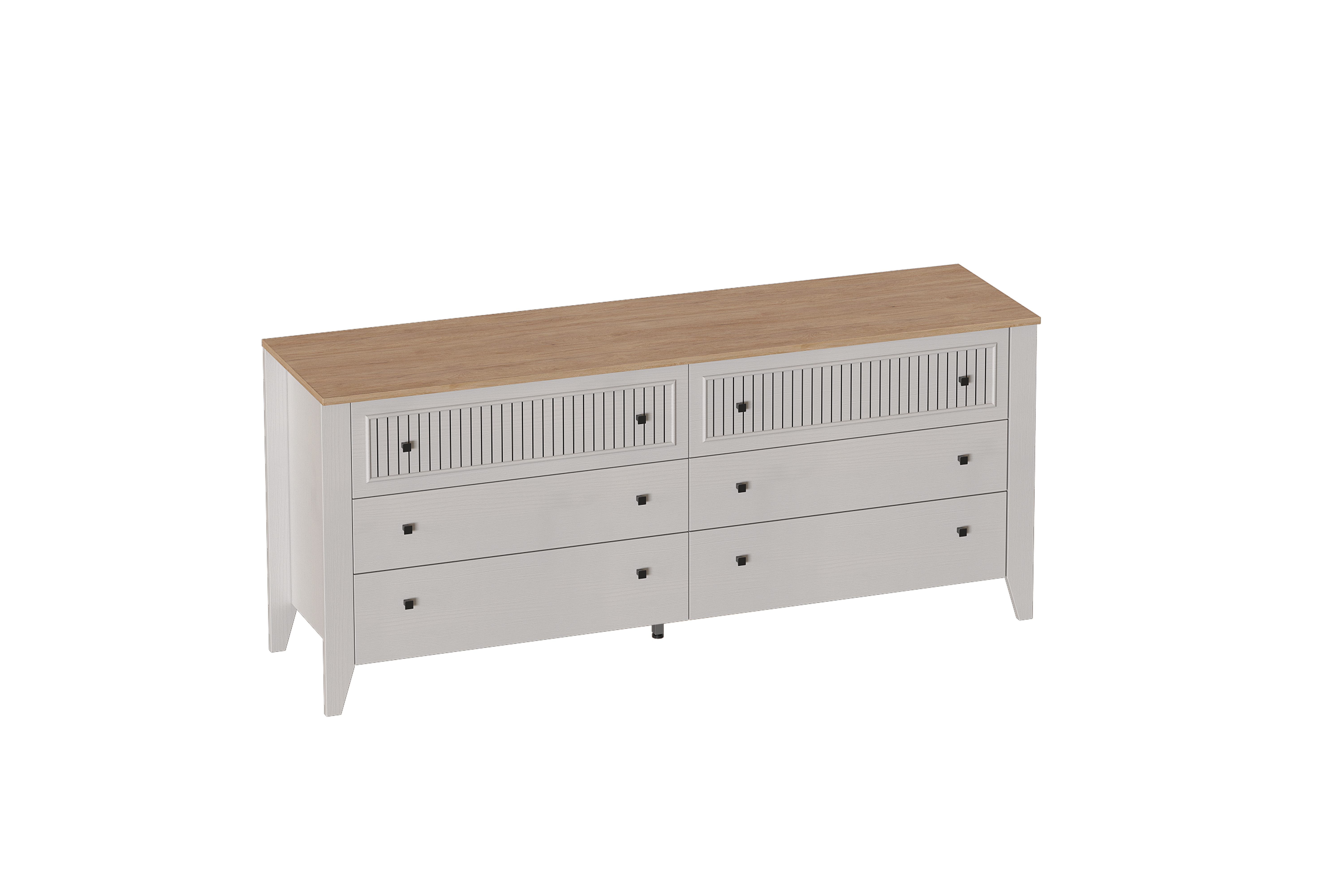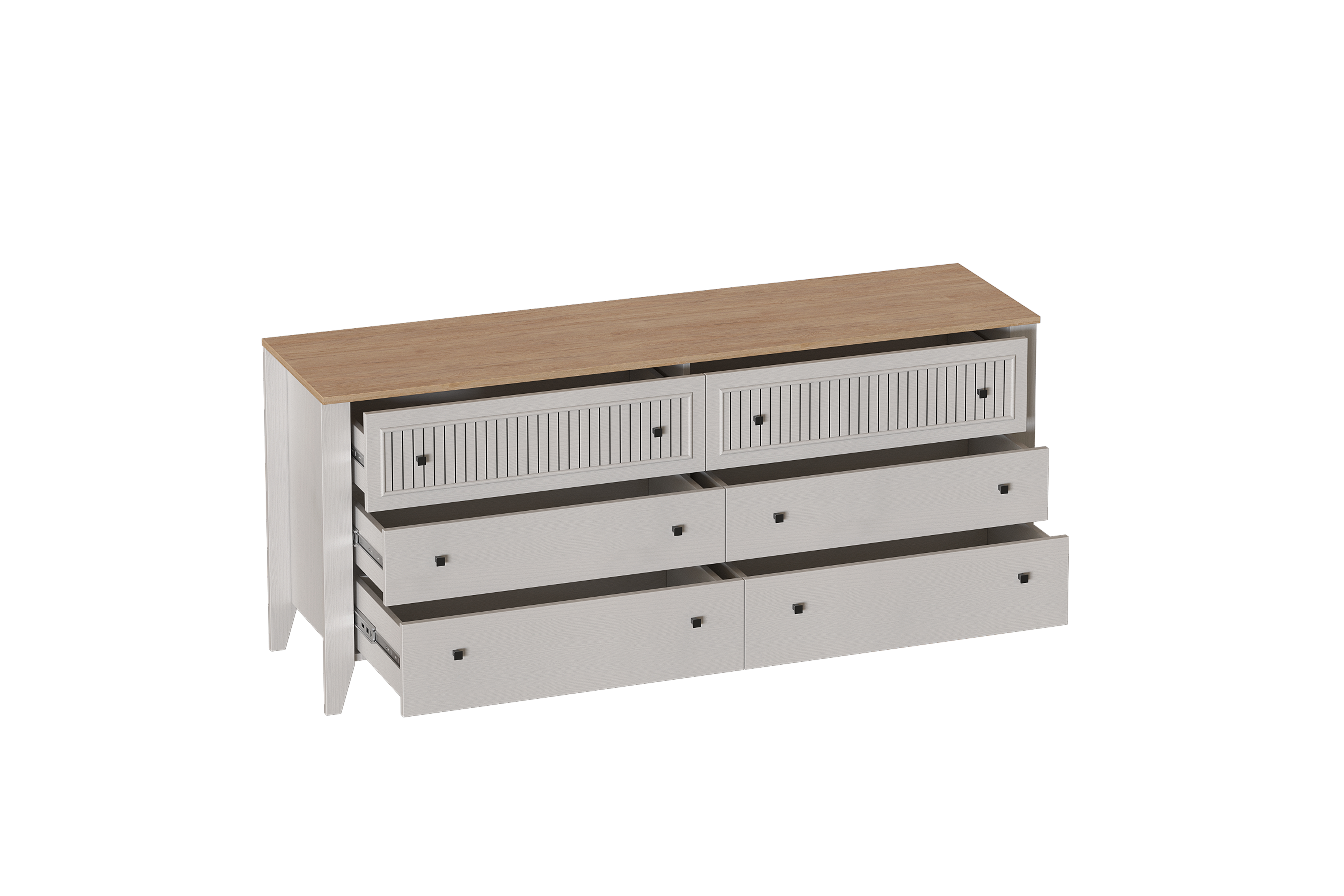 Комод "Валенсия" выполнен в комбинации Дуб натуральный светлый / Персидский жемчуг и состоит из выдвижных ящиков на шариковых направляющих (без амортизаторов), что позволяет удобно хранить вещи и поддерживать порядок в комнате. Он выполнен из безопасных, качественных материалов, что гарантирует долговечность и сохранение первоначального вида на протяжении долгого времени.