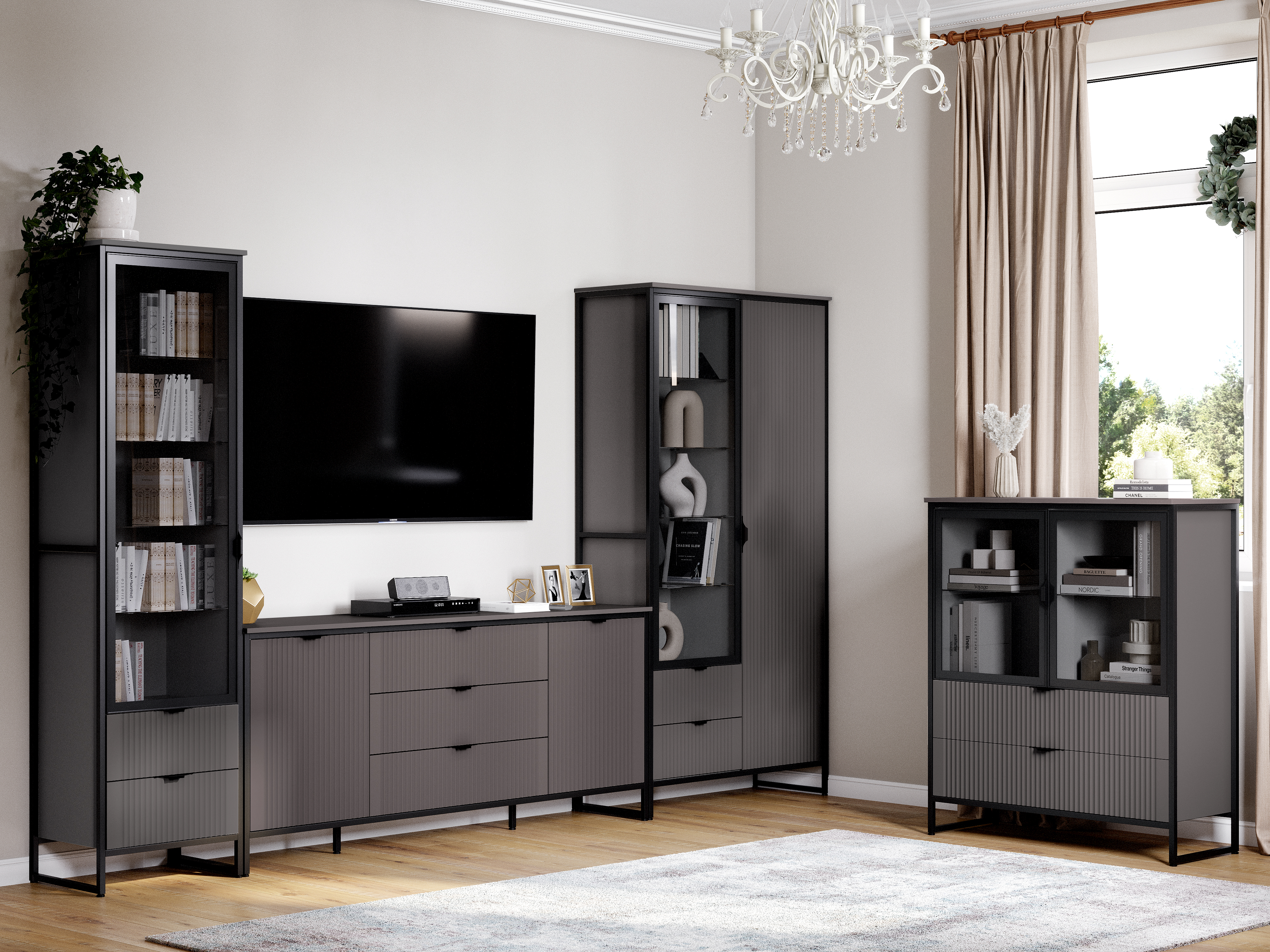 Тумба 2 дв 6 ящ "Нора" гостиная с глухими дверями Графит