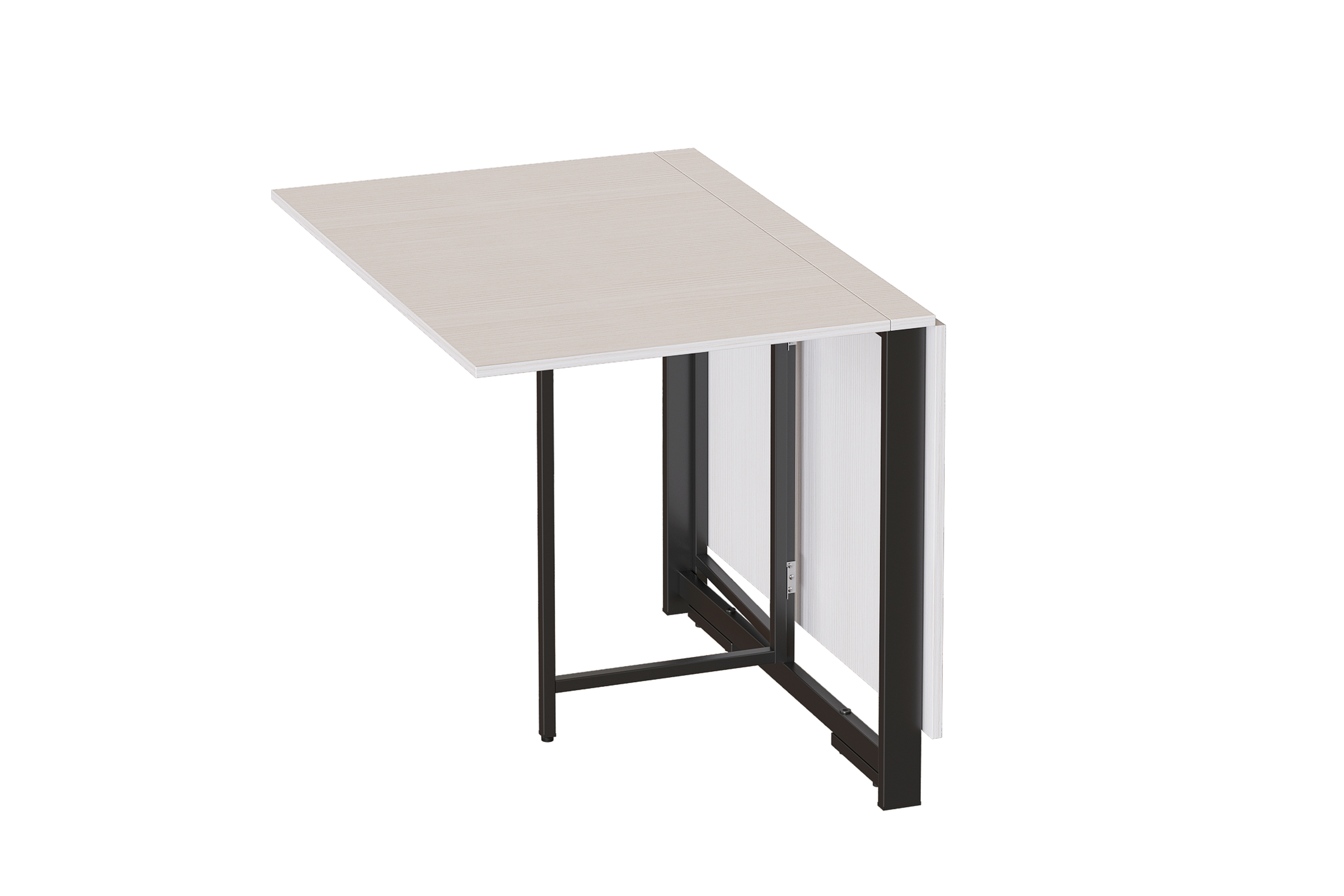 Раскладной стол "Брион 2" со столешницей из ЛДСП. Опорой для столешницы служит металлокаркас. В конструкции изделия предусмотрены регулируемые по высоте опоры.