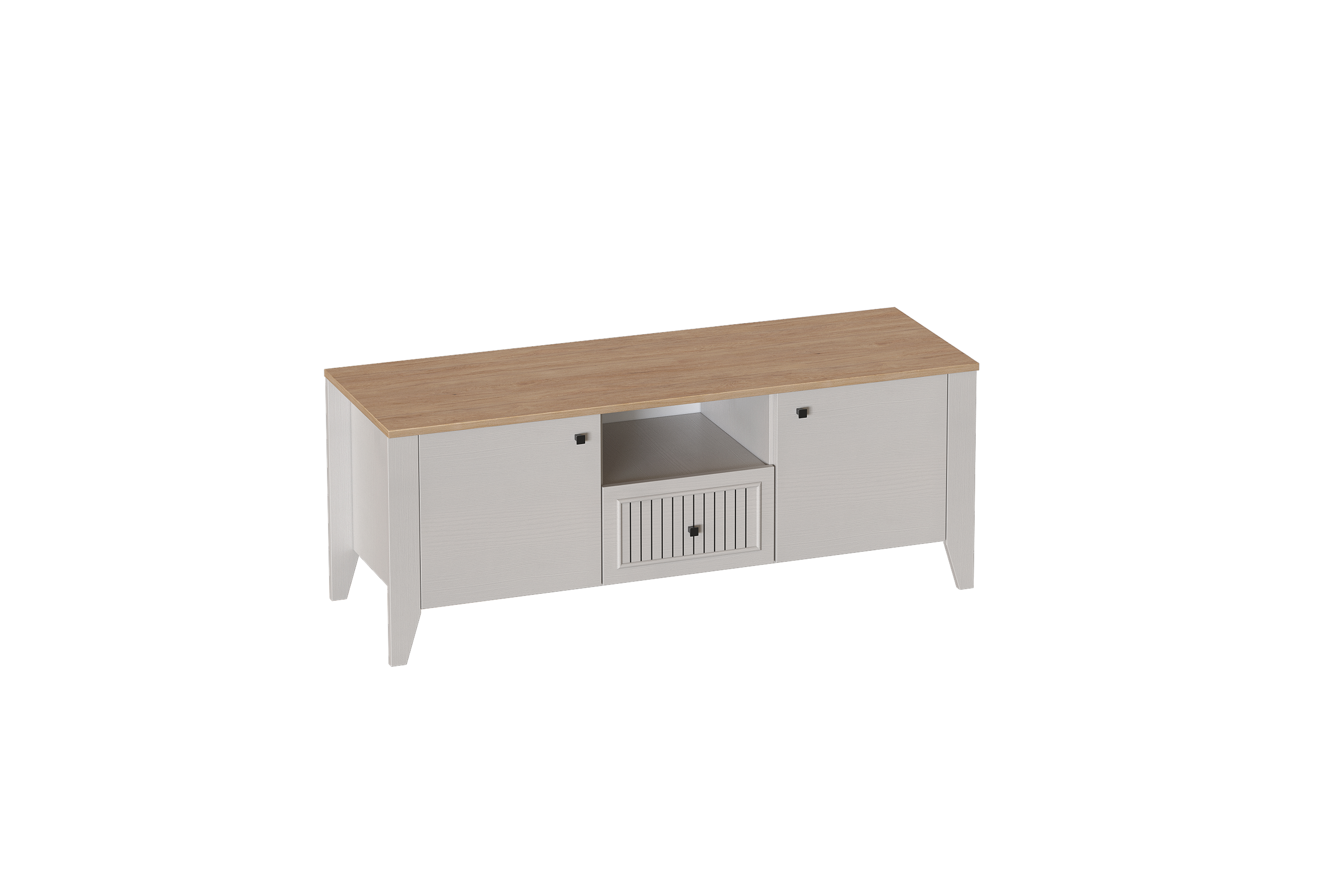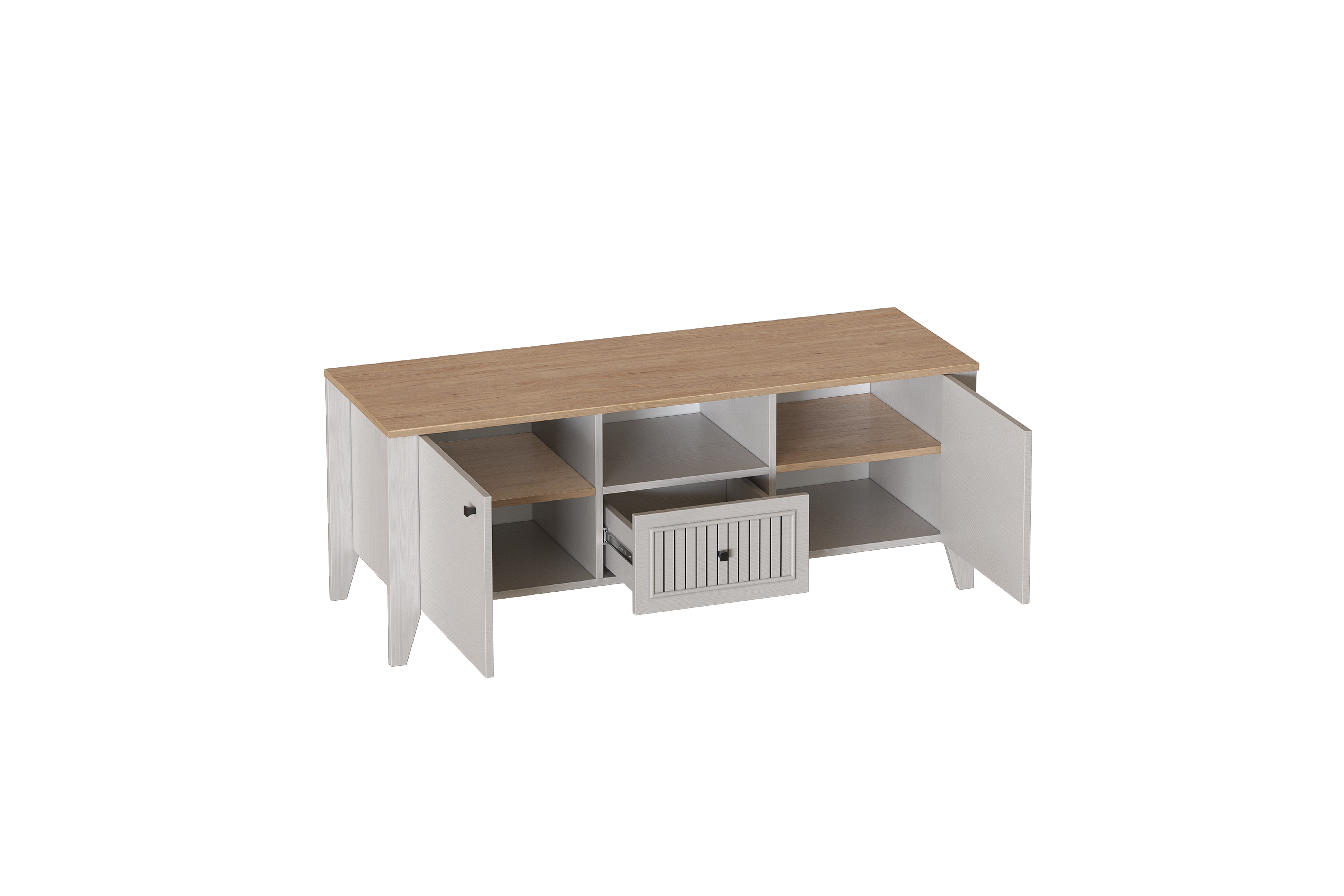 Тумба ТВ "Валенсия" выполнена в комбинации Дуб натуральный светлый / Персидский жемчуг и оснащена одним ящиком на шариковых направляющих (без амортизаторов). . Она выполнен из безопасных, качественных материалов, что гарантирует долговечность и сохранение первоначального вида на протяжении долгого времени.